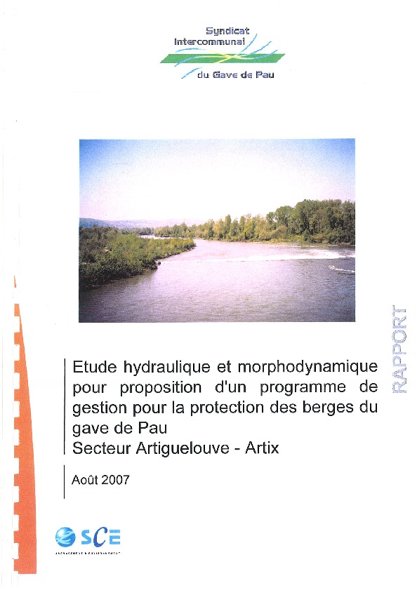 Etude hydraulique et morphodynamique d'un programme de gestion pour la protection des berges du Gave de Pau. Secteur Artiguelouve-Artix.