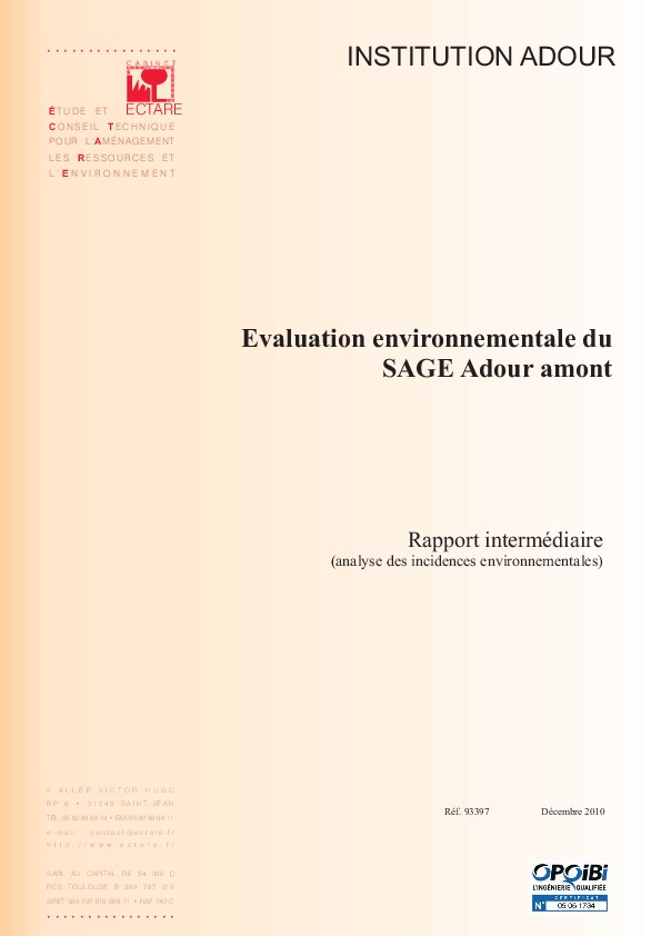 Evaluation environnementale du SAGE Adour amont. Analyse des incidences environnementales. Rapport intermédiaire.