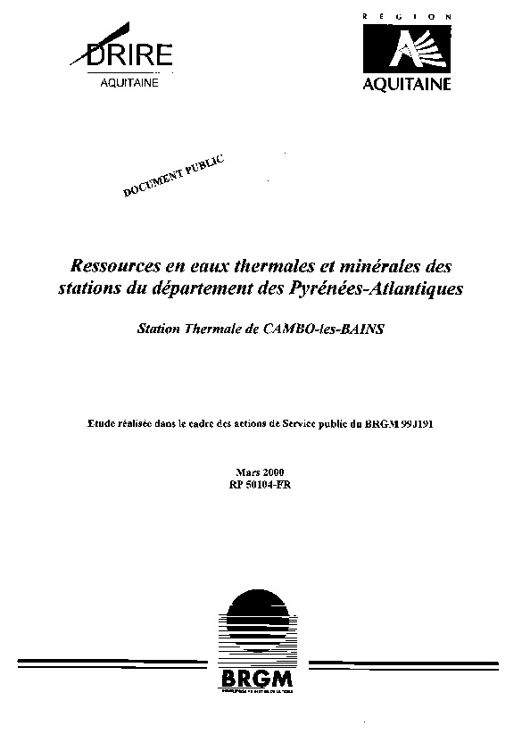 Ressources en eaux thermales et minérales des stations du département des Pyrénées-Atlantiques. Station thermale de Cambo-les-Bains.
