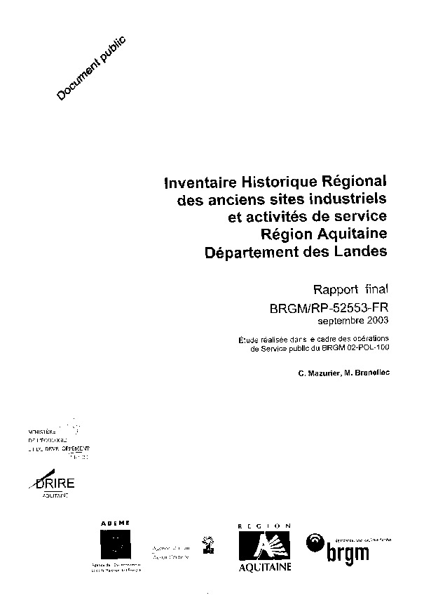 Inventaire historique régional des anciens sites industriels et activités de service. Région Aquitaine. Département des Landes.