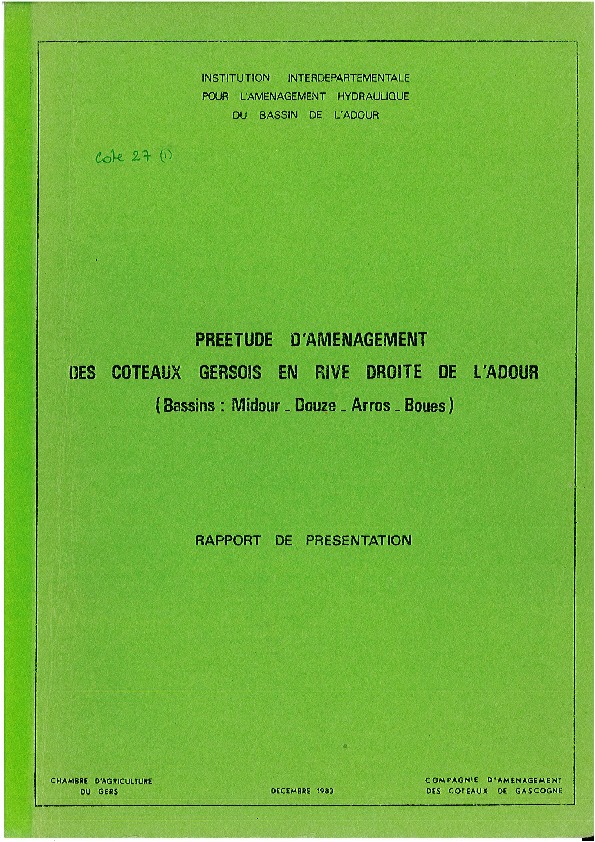 Préétude d'aménagement des coteaux gersois en rive droite de l'ADOUR (Bassins MIDOUR, DOUZE, ARROS, BOUES).