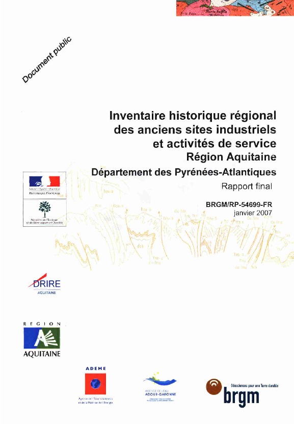 Inventaire historique régional des anciens sites industriels et activités de service. Région Aquitaine. Département des Pyrénées-Atlantiques.