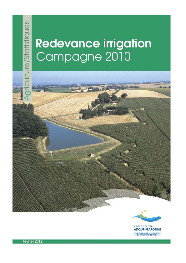 Tous les prélèvements sur la ressource en eau sont soumis à déclaration et redevance auprès des agences de l'eau. En ce qui concerne les prélèvements à usage agricole, le seuil de redevance est fixé à 7000 m3/an et les redevances inférieures à 100 € ne sont pas mises au recouvrement. Les résultats concernent moins de 70% des irrigants. Les prélèvements agricoles sont tributraires des conditions climatiques et varient fortement d'une année sur l'autre. En 2010, le volume prélevé déclaré à l'Agence de l'Eau s'élève à 954 millions de m3 sur le bassin Adour-Garonne. L'irrigation a été moins intense qu'en 2009 en raison d'une pluviométrie plus favorable. Une baisse de 7% est constatée. La moyenne des prélèvements annuels sur la période 2002-2010 est de 937 millions de m3. La répartition par type de ressource est de 33% des prélèvements pour les eaux superficielles, 37% pour les nappes phréatiques, 6% pour les nappes captives et 24% pour les retenues collinaires. En ce qui concerne le bassin de l'Adour, un zoom territorial est effectué sur la nappe des sables des Landes.