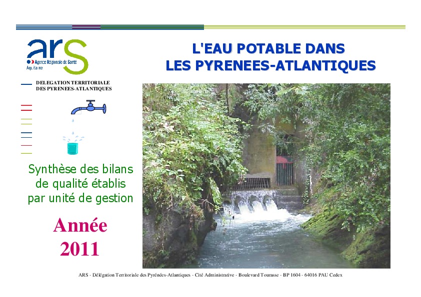 L'eau potable dans les Pyrénées-Atlantiques. Année 2011. Synthèse des bilans de qualité établis par unité de gestion.