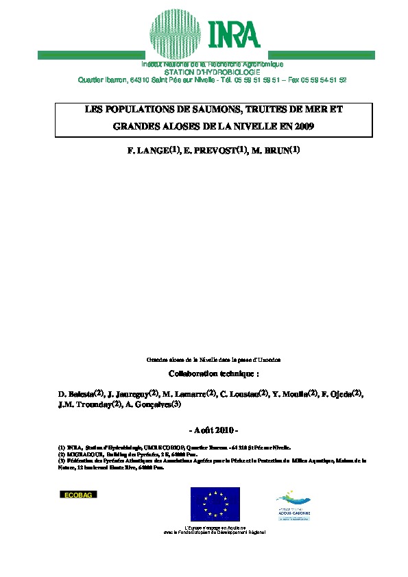 Les populations de saumons, truites de mer et grandes aloses de la Nivelle en 2009.