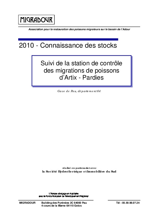 Suivi de la station de contrôle des migrations d'Artix-Pardies. Gave de Pau. Campagne 2010.