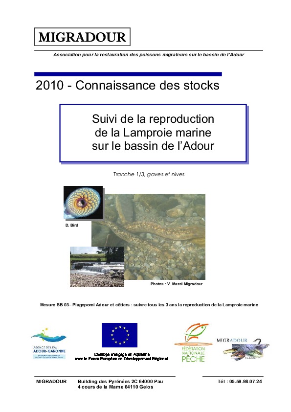 Suivi de la reproduction de la lamproie marine sur le bassin de l'Adour. Tranche 1/3 - Gaves et Nives. Campagne 2010.