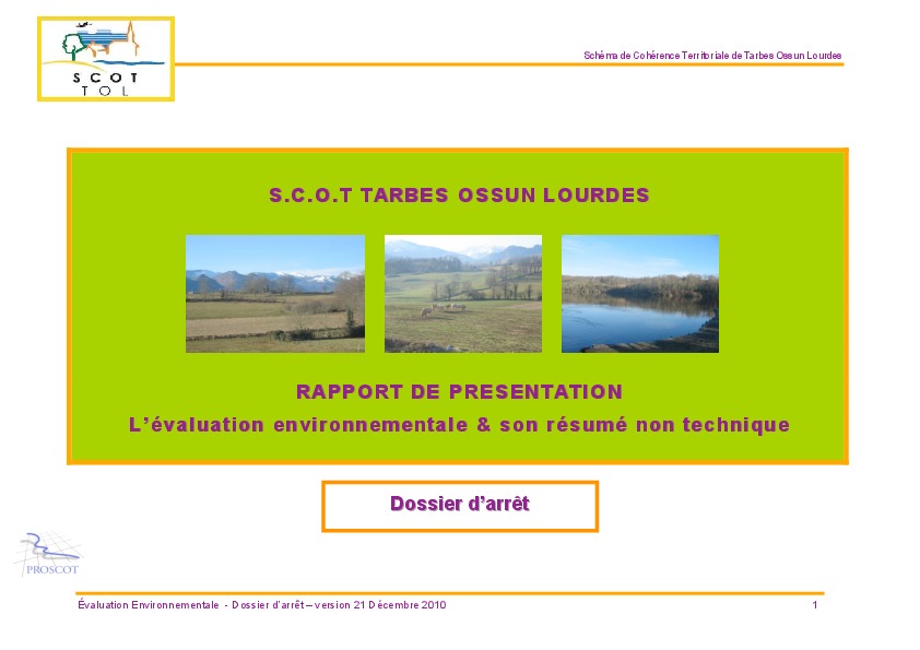 SCoT Tarbes-Ossun-Lourdes. Rapport de présentation. Evaluation environnementale et son résumé non technique. Dossier d'arrêt.