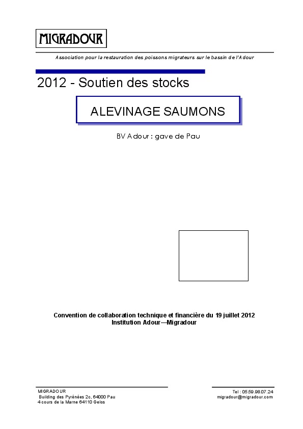 Le programme d'alevinage est présenté : origine des oeufs, structure d'élevage, déroulement des opérations. 526000 individus ont été déversés entre l'Ouzom (80900) et le Gave de Pau (445100 juvéniles).