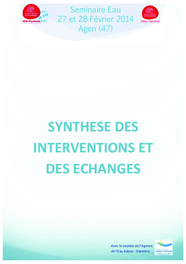 Séminaire eau - 27-28 février 2014 - Synthèse des interventions et des échanges