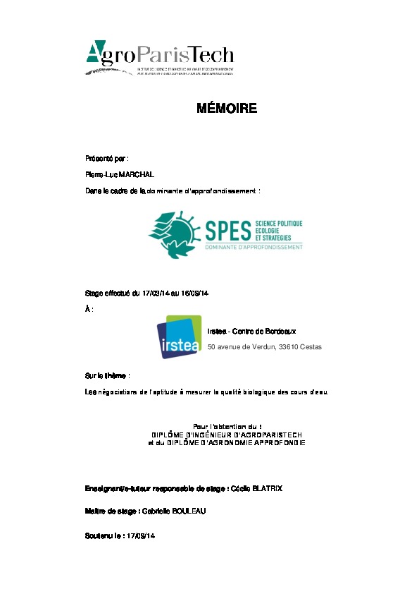 Ce mémoire aborde le système de mesure de la qualité biologique en France. L'expertise réalisée par les bureaux d'études privés est souvent remise en cause par les agents de service de l'Etat. L'accréditation est encadrée par des protocoles techniques parfois remis en cause.