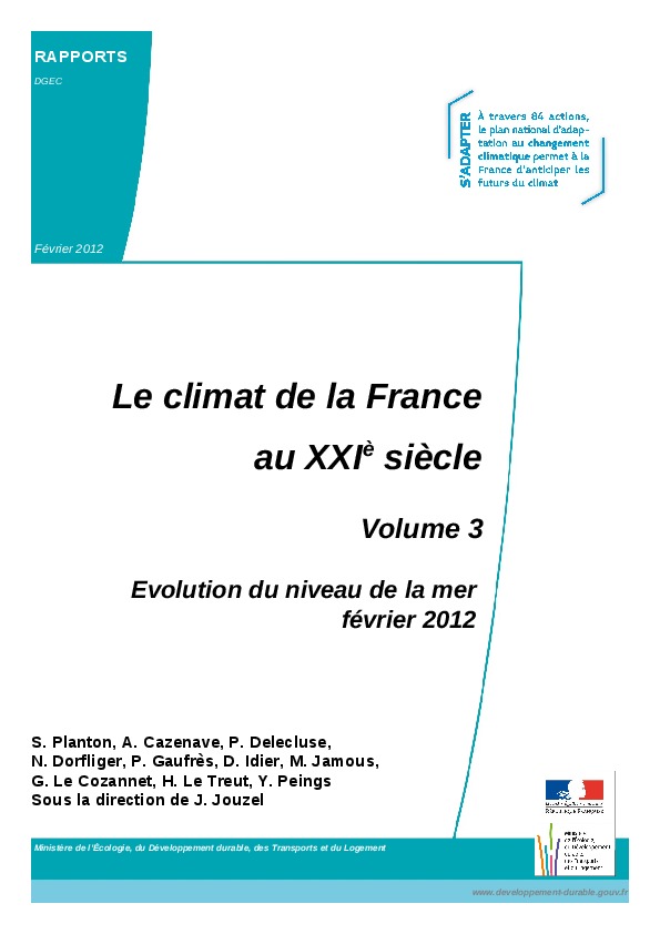 Le climat de la France au XXIème siècle - Volume III - Evolution du niveau de la mer.