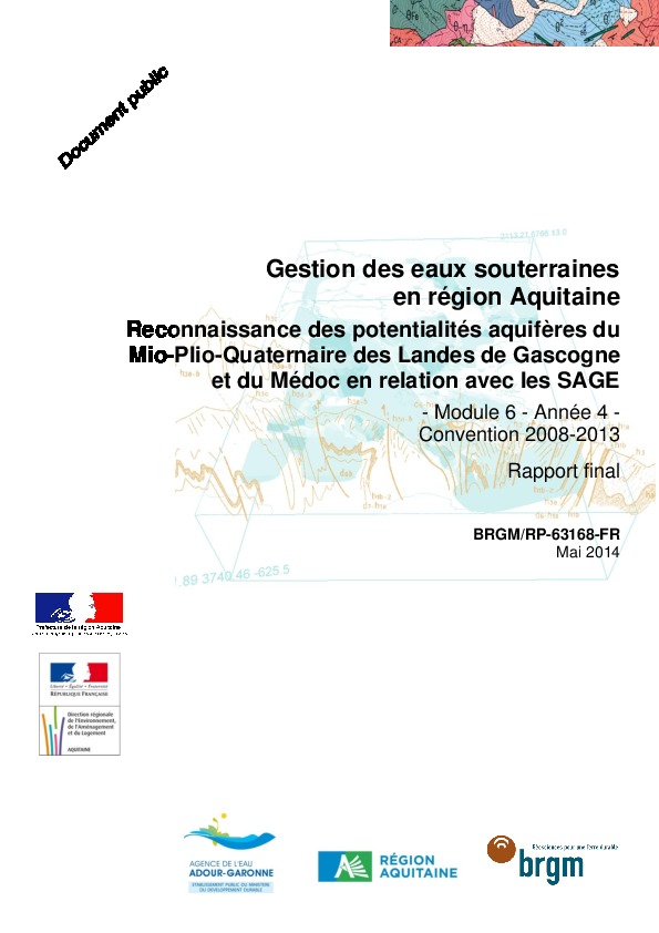 Gestion des eaux souterraines en région Aquitaine. Reconnaissance des potentialités aquifères du Mio-Plio-Quaternaire des Landes de Gascogne et du Médoc en relation avec les SAGE.
