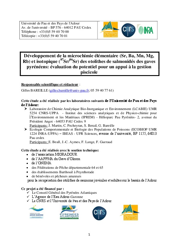 Développement de la microchimie élémentaire et isotopique des otolithes de salmonidés des gaves pyrénéens : évaluation du potentiel pour un appui à la gestion piscicole.