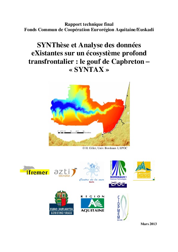 Synthèse et analyse des données existantes sur un écosystème profond transfrontalier : le Gouf de Capbreton - SYNTAX