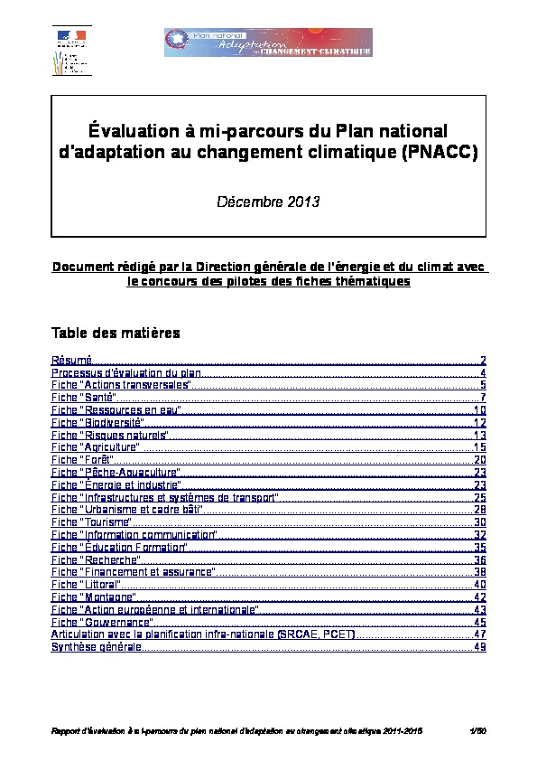 Evaluation à mi parcours du Plan National d'adaptation au changement climatique.