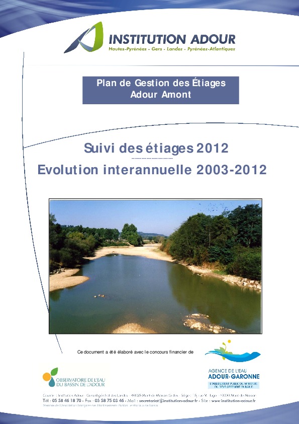 PGE Adour amont. Suivi des étiages 2012. Evolution interannuelle 2003-2012