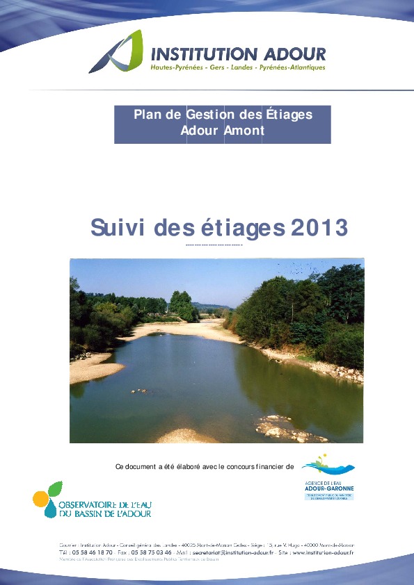 PGE Adour amont. Suivi des étiages 2013