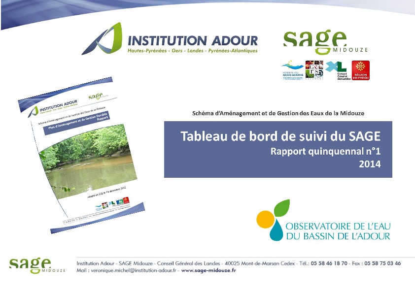 SAGE Midouze. Tableau de bord de suivi du SAGE. Rapport quinquennal 1 - 2014.