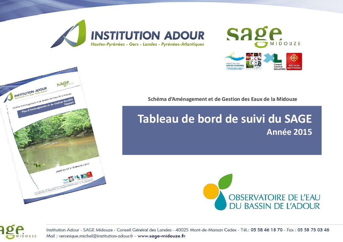 Tableau de bord de suivi du SAGE Midouze. Année 2015.