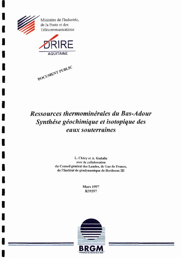 Ressources thermominérales du BAS ADOUR. Synthèse géochimique et isotopique des eaux souterraines.