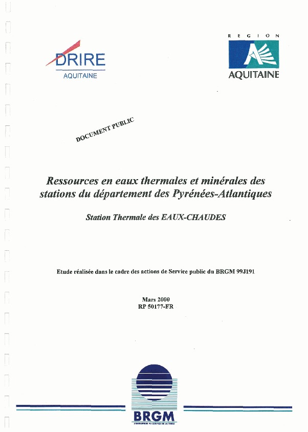 Ressources en eau thermales et minérales des stations du département des Pyrénées-Atlantiques. Station thermale des EAUX-CHAUDES.