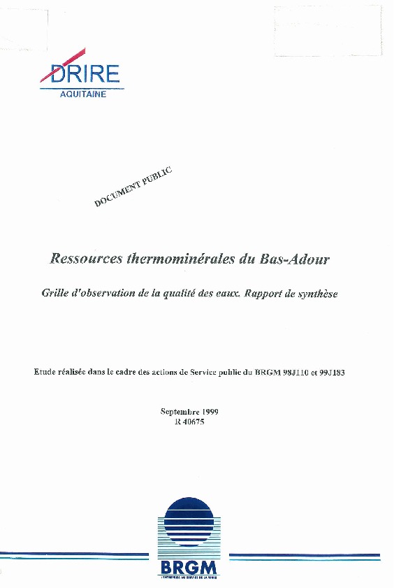 Ressources thermominérales du BAS ADOUR. Grille d'observation de la qualité des eaux. Rapport de synthèse.