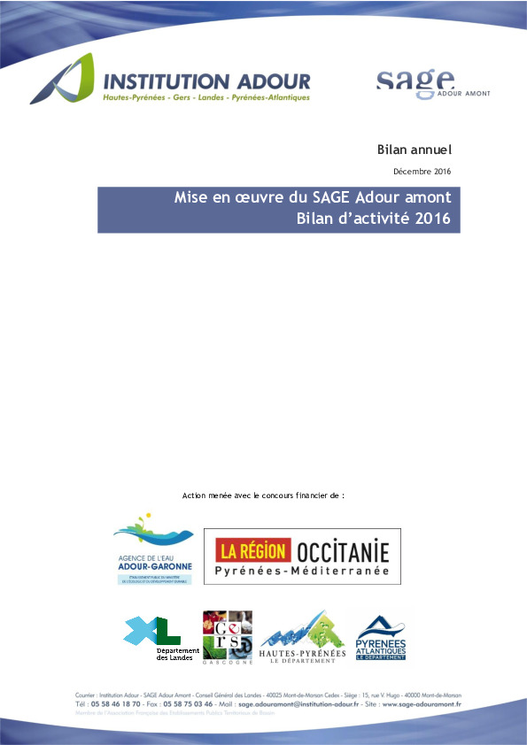 Mise en oeuvre du SAGE Adour amont - Bilan d'activité 2016