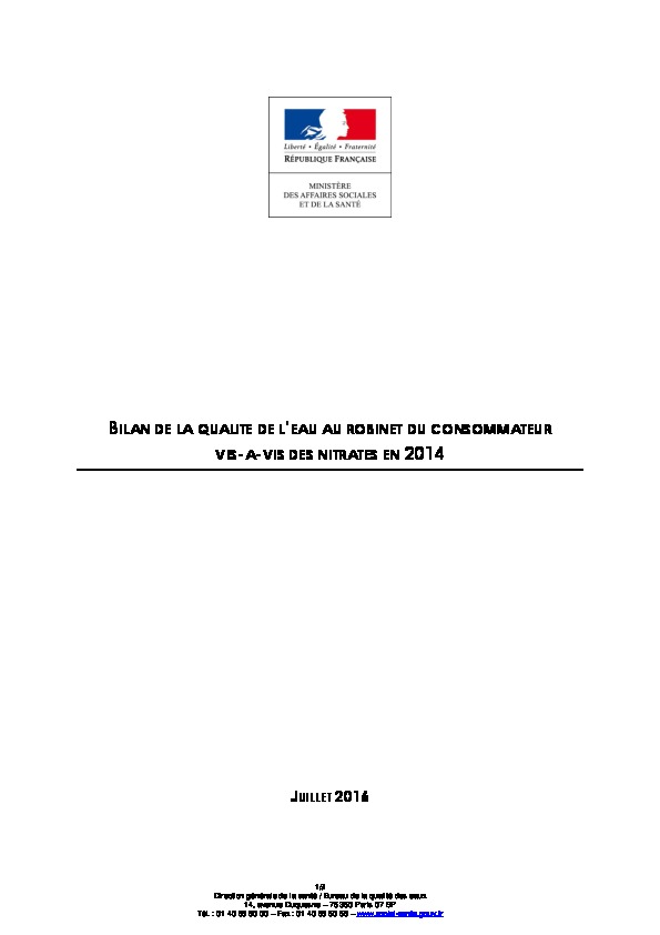 Bilan de la qualité de l'eau au robinet du consommateur vis à vis des nitrates en France en 2014