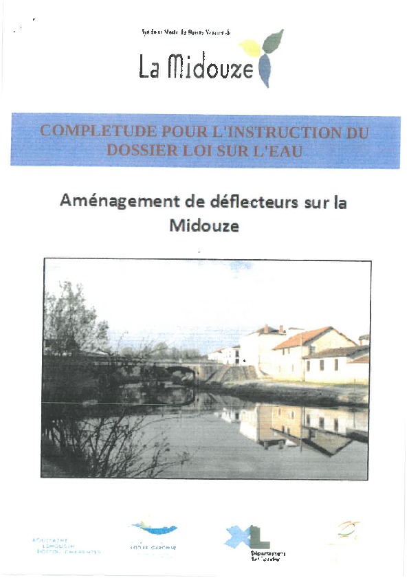 Complétude pour l'instruction du dossier Loi sur l'Eau. Aménagement de déflecteurs sur la Midouze