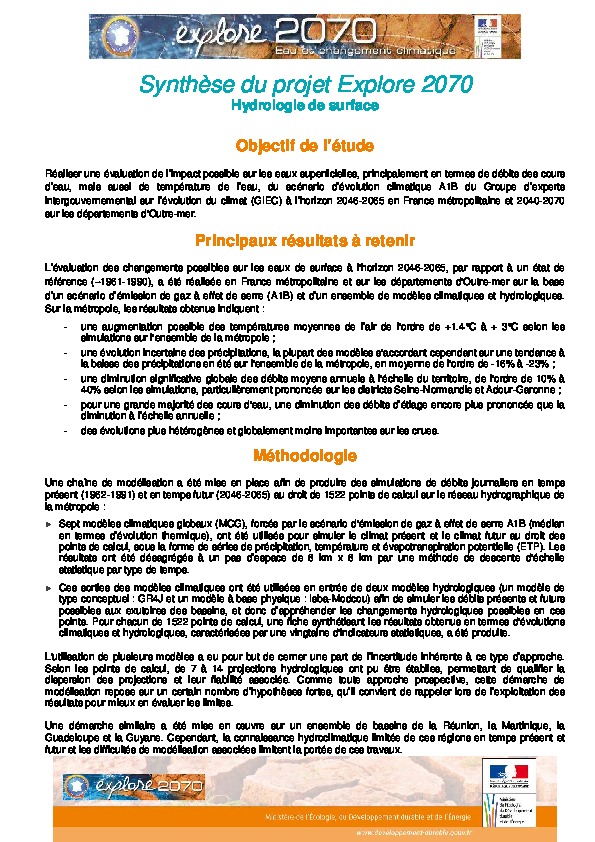 Explore 2070 - A0 hydrologie de surface - Synthèse