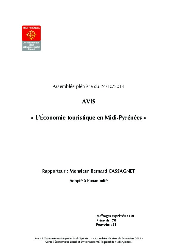 Ce rapport permet de bien se représenter un état des lieux du tourisme régional