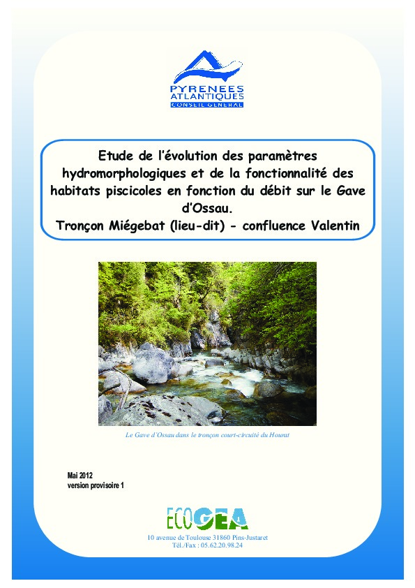 Etude de l’évolution des paramètres hydromorphologiques et de la fonctionnalité des habitats piscicoles en fonction du débit sur le Gave d’Ossau. Tronçon Miégebat (lieu-dit) - confluence Valentin