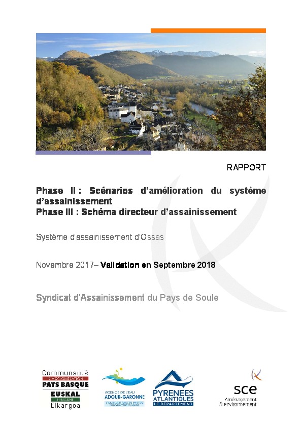 Système d’assainissement d’Ossas - Phase II : Scénarios d’amélioration du système d’assainissement Phase III : Schéma directeur d’assainissement