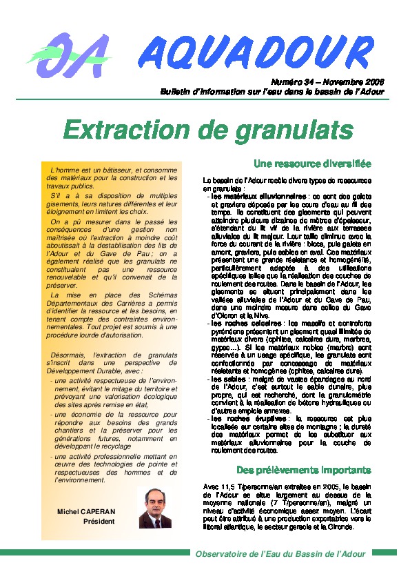 L'extraction des matériaux a suscité de fortes déstabilisation en rivière dans les années 70. Contraintes environnementales et contraintes économiques conduisent à une meilleure réglementation des extractions, dans le cadre de schémas départementaux.