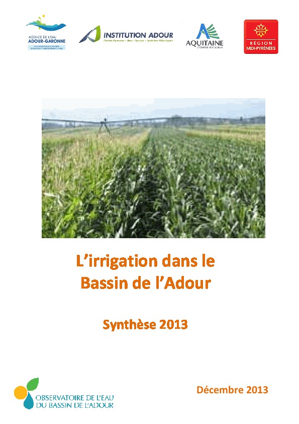 L'irrigation dans le bassin de l'Adour. Synthèse 2013.