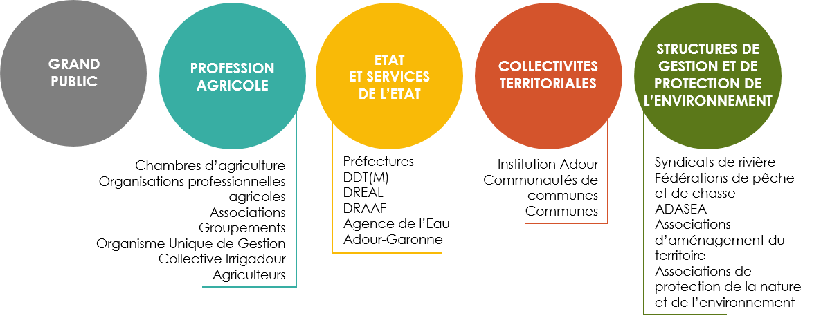 Le projet de territoire pour la gestion de l'eau du Midour constitue une démarche de concertation pour la mise en œuvre d'une gestion quantitative partagée de la ressource en eau. Par conséquent, elle implique une participation des acteurs du territoire pour la co-construction et la validation de chaque étape du projet. Par ailleurs, les acteurs participent activement à l'élaboration du programme d'actions, afin que le projet de territoire identifie des solutions partagées et acceptées par tous.