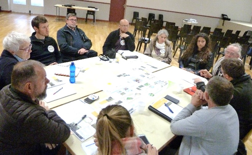 Groupes d’une trentaine de personnes, représentatifs des acteurs du territoire et constants sur toute la démarche : 2 ateliers sur l’état des lieux, 2 ateliers sur les propositions d’actions