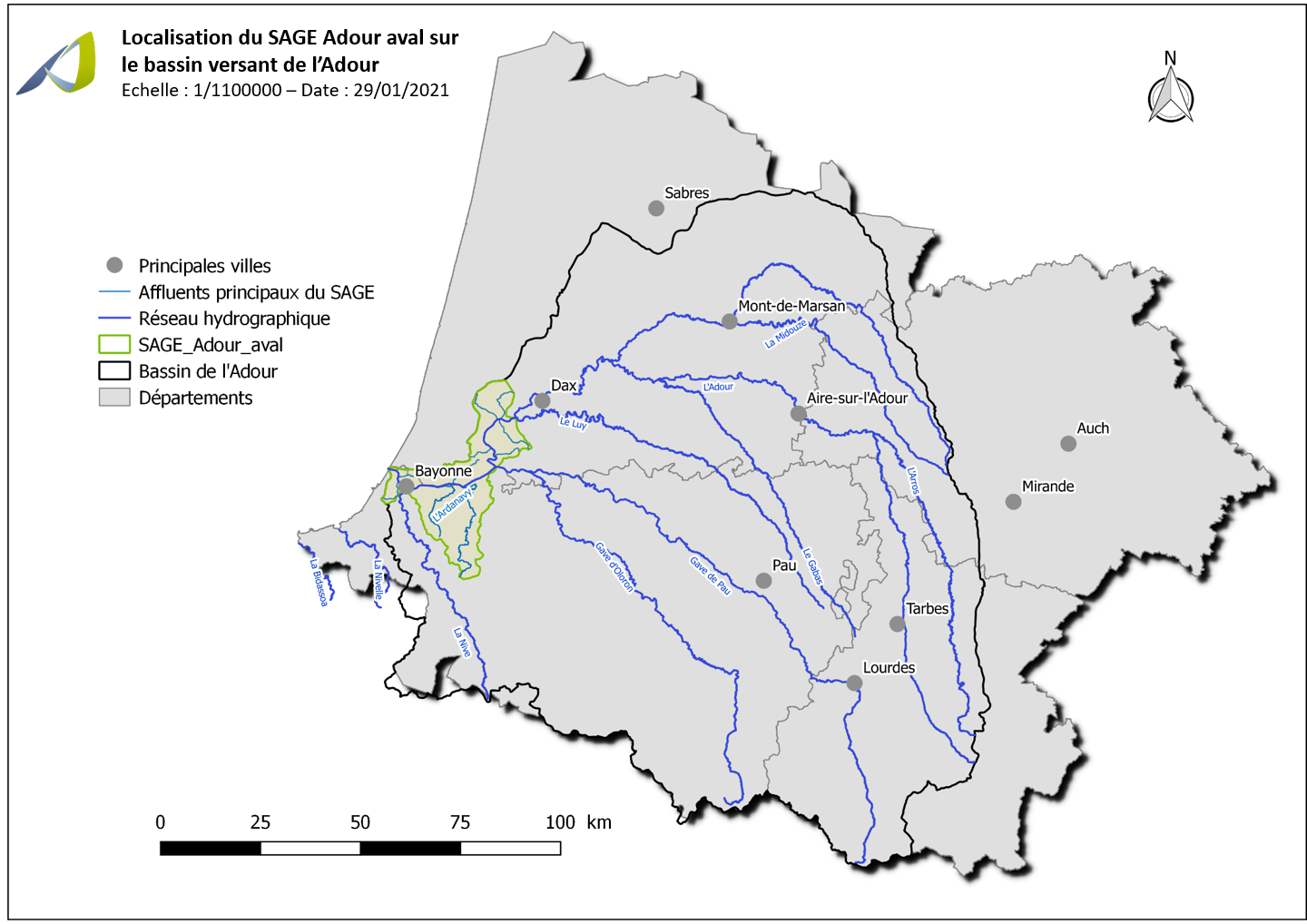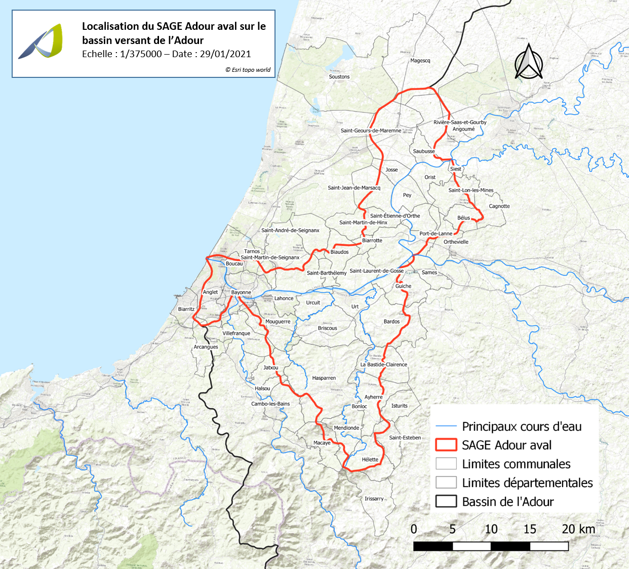 Le périmètre du SAGE Adour aval constitue la partie à l’extrême aval du bassin versant de l’Adour.
