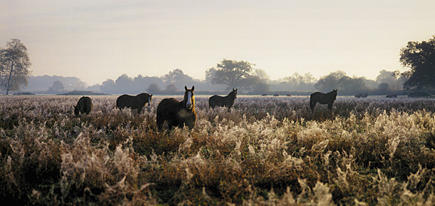 - Au sud de l'Adour, au pied du massif pyrénéen, les collines vertes et les petites vallées sont couvertes de prairies, bois et champs cultivés ;