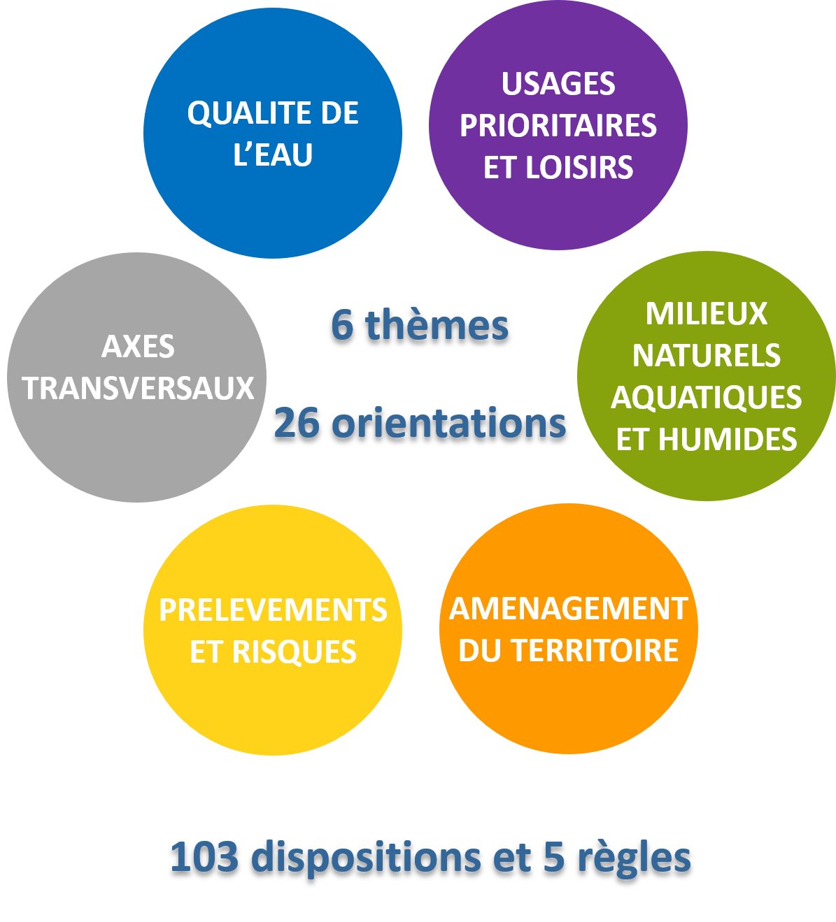 Le SAGE est constitué d'un plan d'aménagement et de gestion durable (PAGD) et d'un règlement ; ces deux documents constituent le projet pour l'eau et les milieux aquatiques, construit par les acteurs locaux pour ce territoire.