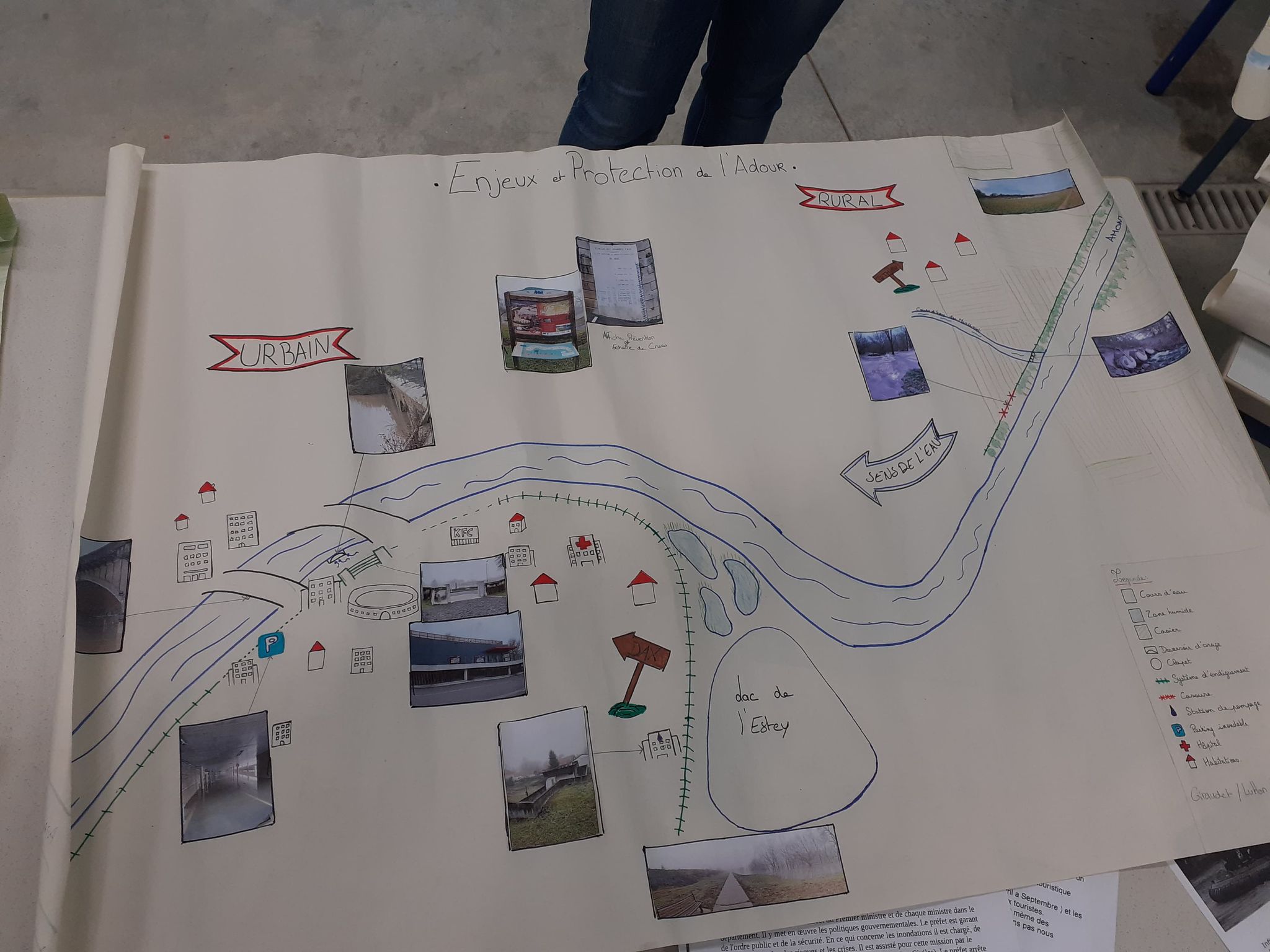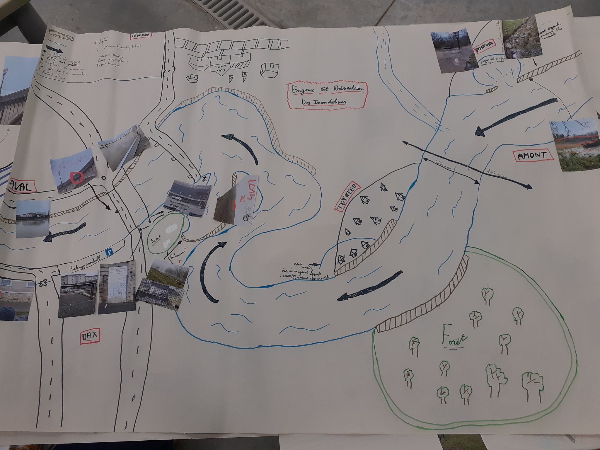 Les étudiants en première année ont pu aller sur le terrain prendre connaissance du système d'endiguement de Dax et de la digue de Téthieu. Une restitution sous forme de maquettes a été réalisée (voir quelques exemples ci-dessous). De plus, les étudiants ont participé à un jeu de rôle en incarnant des acteurs liés à la gestion du risque inondation (collectivités locales, services de l'Etat, riverains, secours, etc.) sur les situations possibles (projet de recul de digue, rupture d'un ouvrage lors d'une inondation, ...).