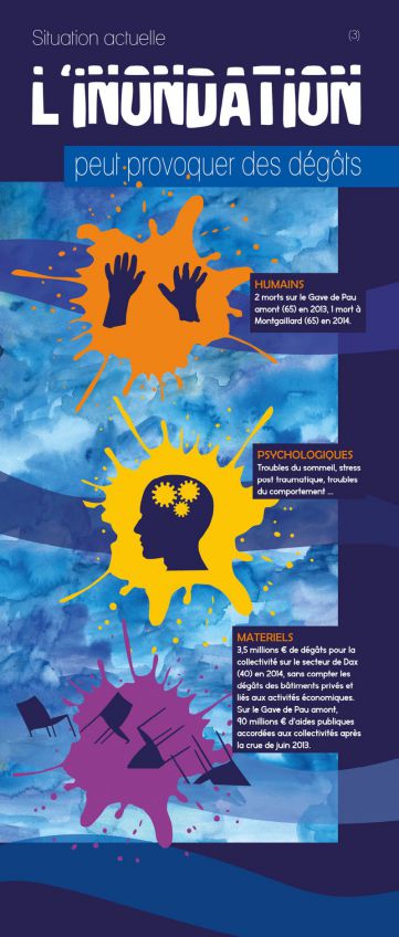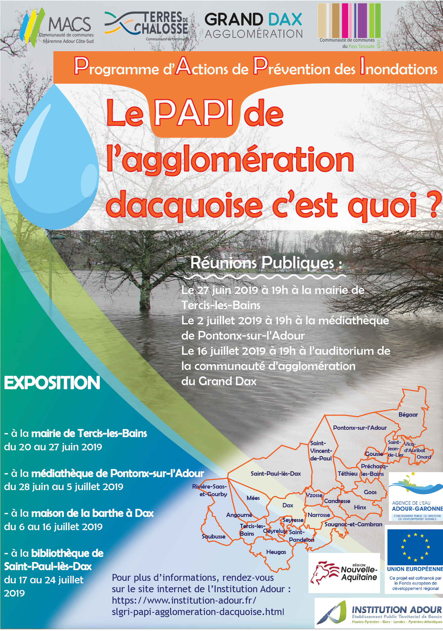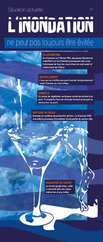 L'exposition intitulée "Quand la rivière s'invite" s'est déplacée en 2017 dans les communes du périmètre du PAPI de l'agglomération dacquoise pour informer et sensibiliser les habitants aux comportements adaptés en cas d'inondation.