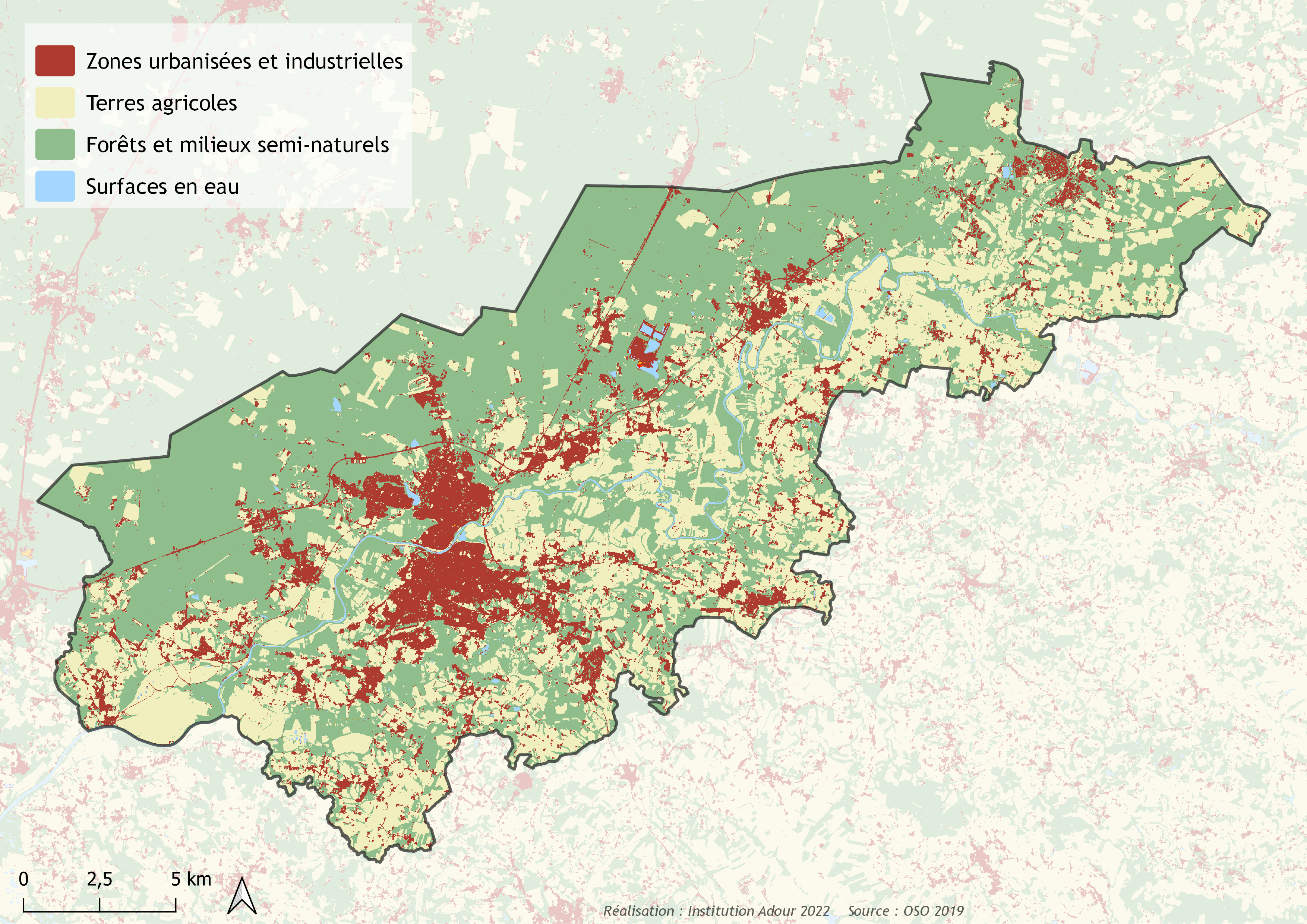 La carte ci-dessus donne un aperçu de l'occupation du sol du territoire :